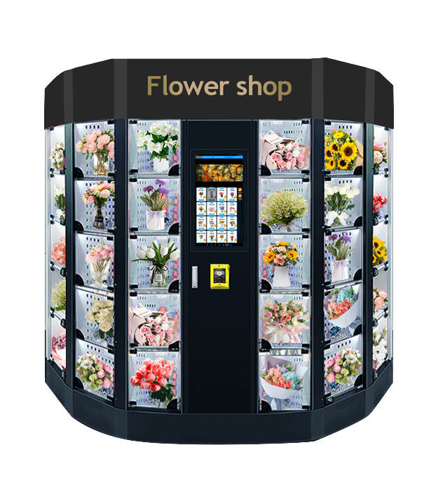 Máy bán hoa tươi. Máy đi kèm với chức năng làm mát. Hoa tươi có thể được giữ trong khoảng 2 ~ 25 độ C.Nó cũng có một màn hình cảm ứng 22 inch cho quảng cáo và giao diện mua hàng.