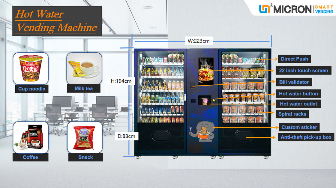 Máy bán hàng tự động mì ly với nước nóng, Đồ uống và đồ ăn nhẹ, Máy bán hàng tự động cà phê hòa tan, Micron