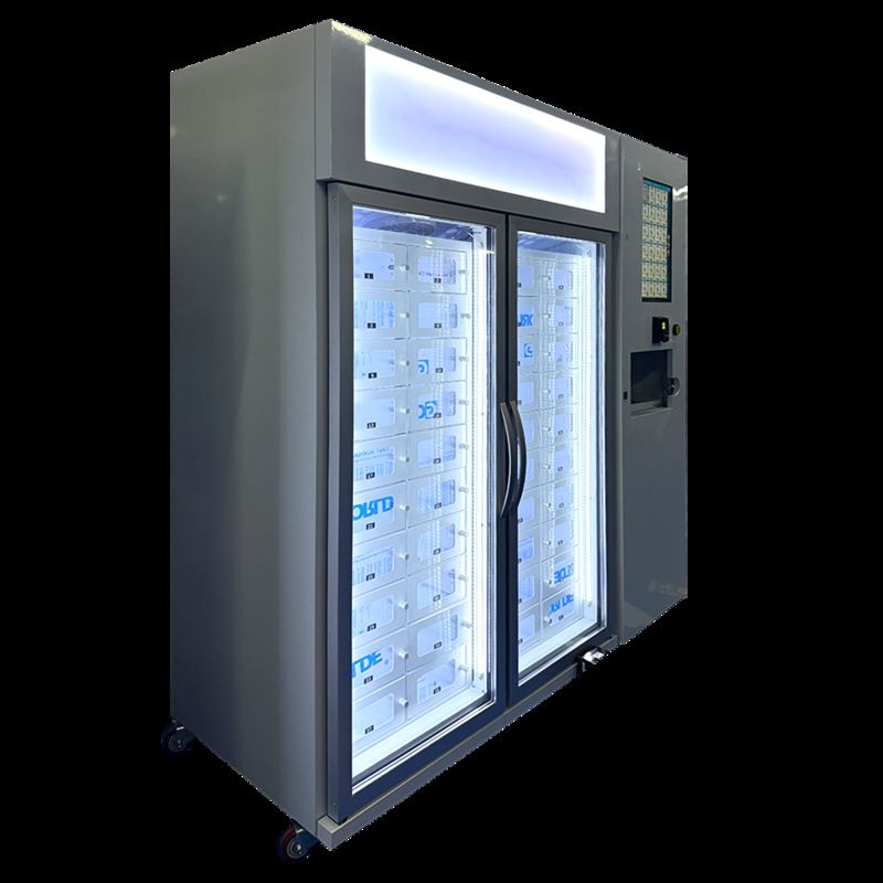 Máy bán thực phẩm đông lạnh là một giải pháp tiên tiến kết hợp kho lạnh với khả năng làm nóng tức thì. Với 40 tủ khóa có kích thước 212,9 × 126,7 × 470 mm mỗi tủ, chiếc máy này cung cấp không gian rộng rãi cho các mặt hàng thực phẩm đông lạnh đồng thời mang đến sự tiện lợi khi sưởi ấm theo yêu cầu thông qua kệ vi sóng tích hợp.